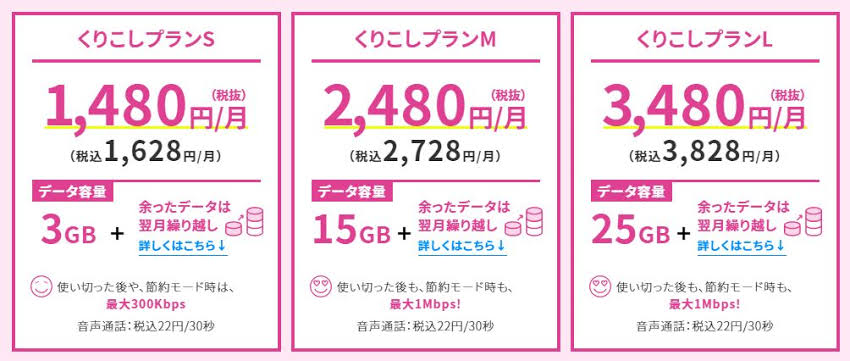 上記のプランでプラス通話オプションをつけるかというところで、毎月の基本料が決まってくる形です。
